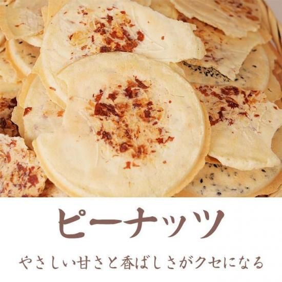形は少し不揃いでも、香ばしさと風味はそのまま。 香り豊かなごま味、やさしい甘さのピーナッツ味、どちらも素朴で懐かしい味わいです。